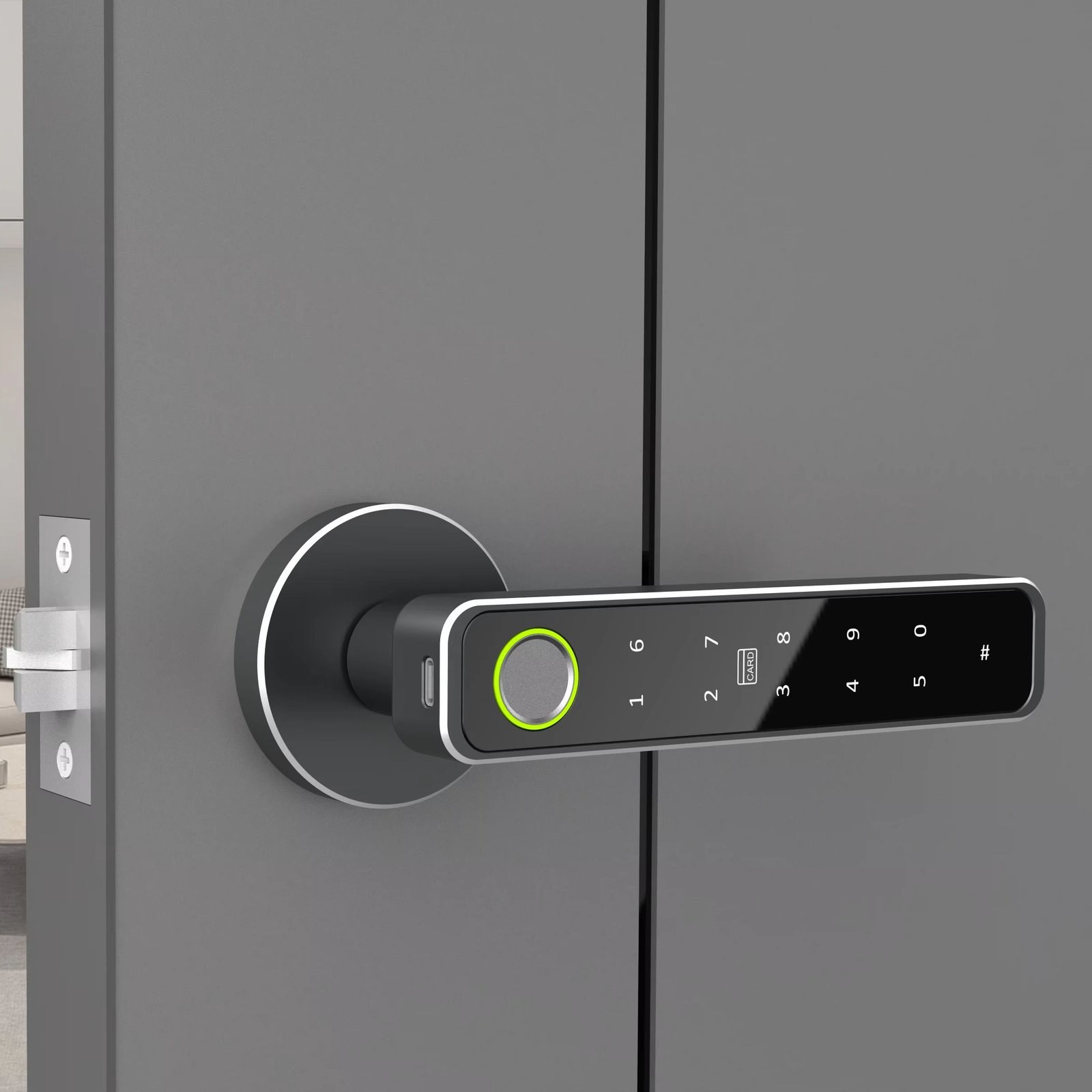 4. [Ample Storage Capacity] Our digital handle lock offers ample storage capacity for your convenience. Store up to 100 sets of fingerprints, 1000IC cards for easy access management. Grant access to family members, friends, or employees with ease while maintaining the highest level of security.
