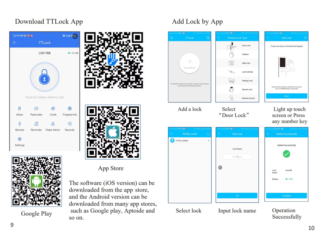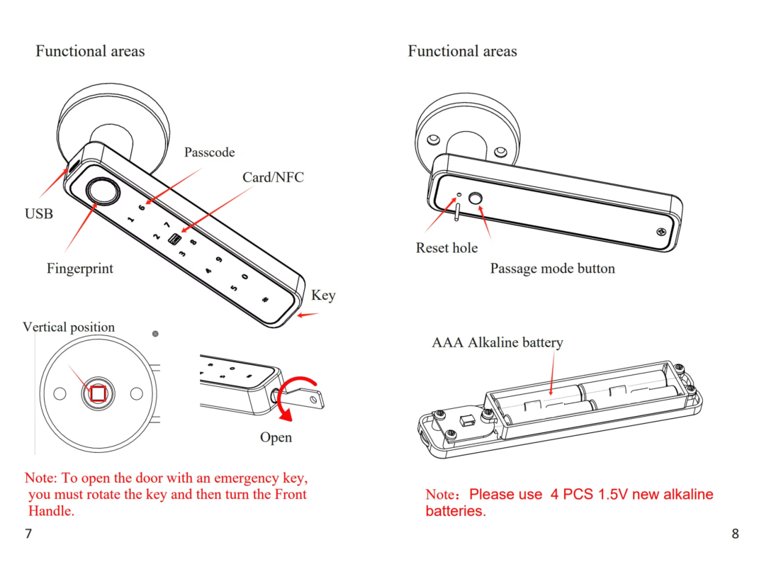 Unlock methods:Card, Fingerprint, Password, Key, App, NFC