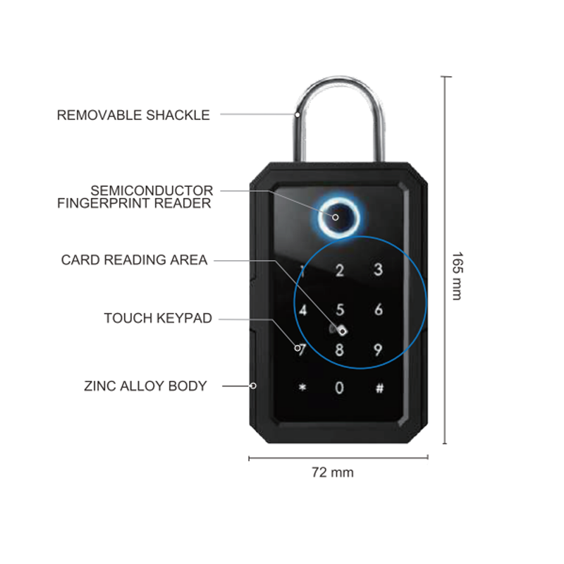 Unlocking Methods: Fingerprint, Password, IC Card, Bluetooth app, Keys