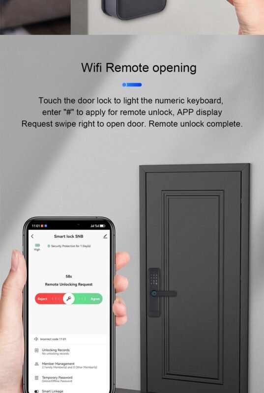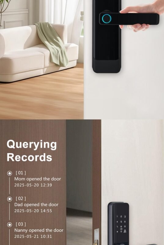[Records Unlocking]: You can examine and check the unlocking record via the APP, and you can also share the temporary password/elec. key with visitors, babysitters, housekeepers, tenants, guests, and so on.