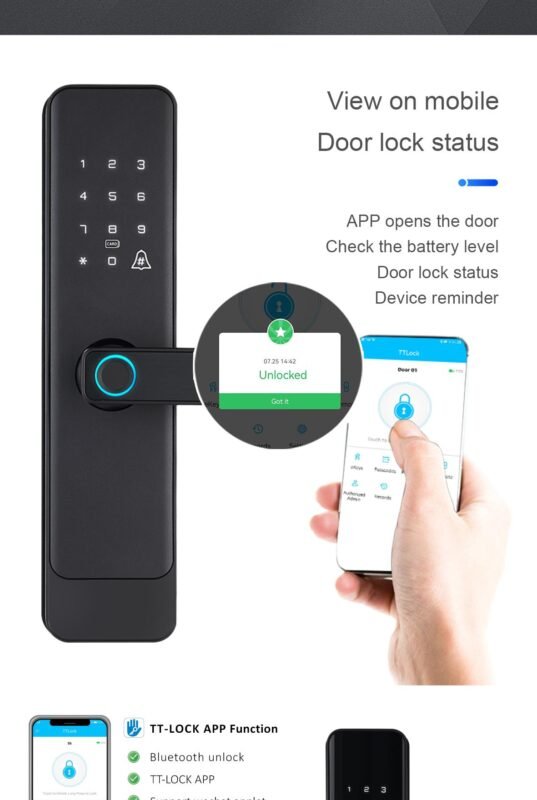 Unlocking Methods: Fingerprint, Password, IC Card, Bluetooth TTlock app, Keys