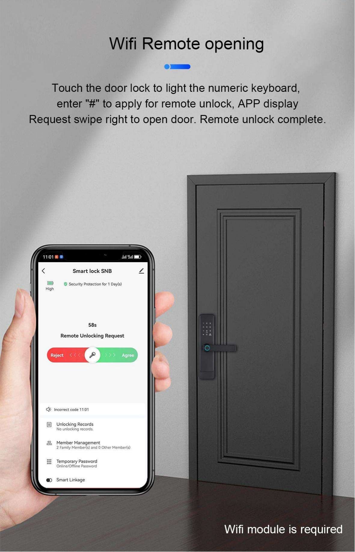 Unlock methods:Card, Fingerprint, Password, Key, App, NFC